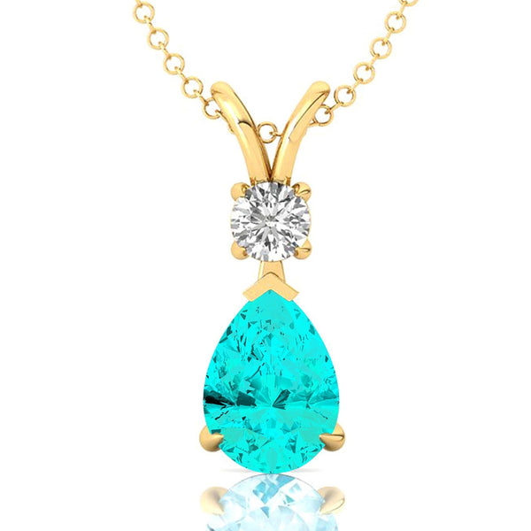 Paraiba Tourmaline Teardrop Pendant with Solitaire Diamond