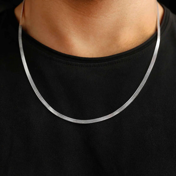 NOTE: CHAIN SIZE WOULD BE 20 INCHES. Introducing the Snake Chain – a stunning fusion of timeless elegance and Rhodium polish. This exquisite chain elevates your style, making it a...