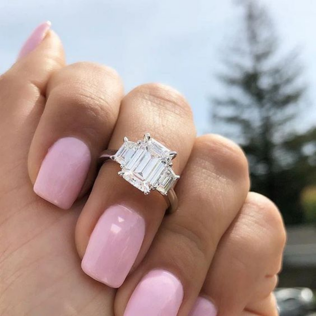 3 Emerald Moissanite Ring