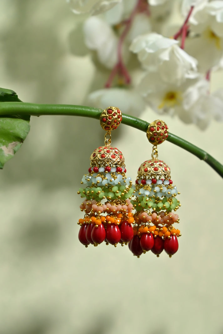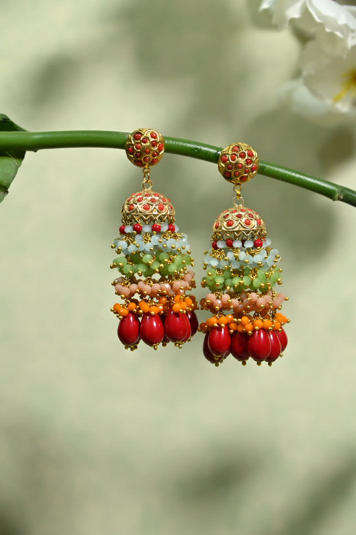 An elegant multi-stone Jadau earring with the most stunning festoon. The perfect accessory for your occasion. This earrings are handcrafted with love