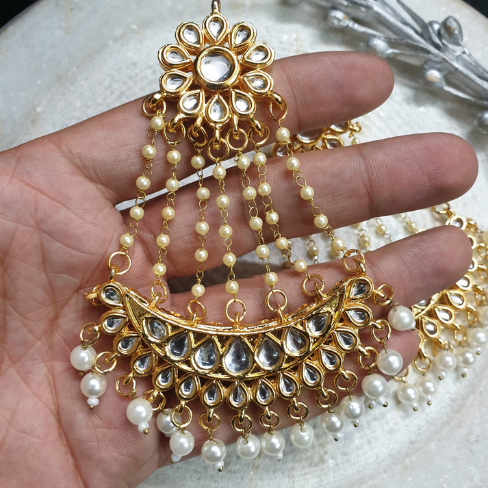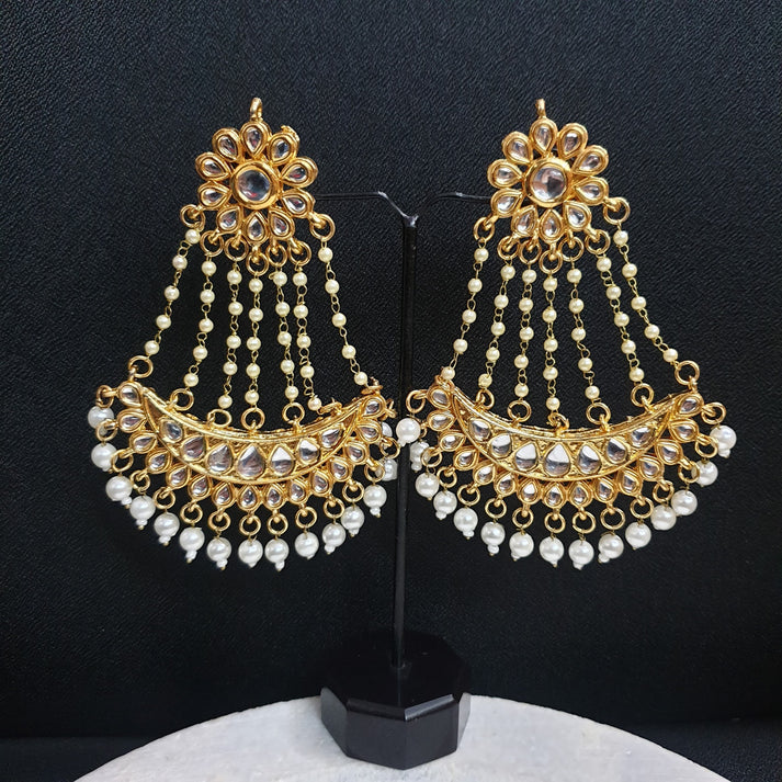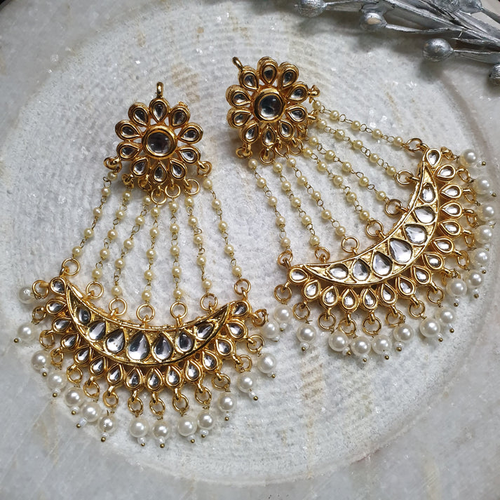 Pearl Kundan Chandbali Earrings
